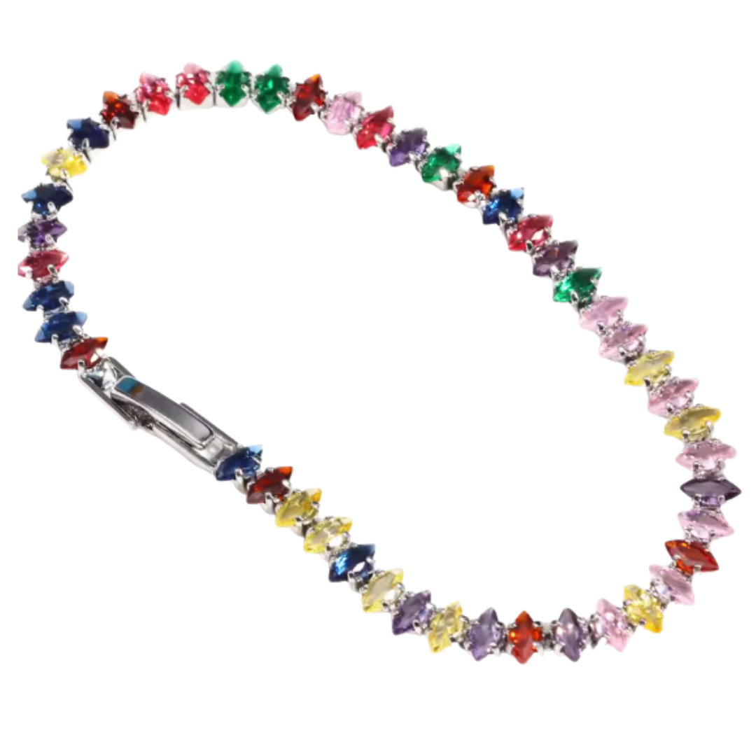 The Enzina Marquise is a striking tennis bracelet that seamlessly transitions between occasions. Its multi-coloured marquise stones catch the light with refined elegance, while the contemporary design ensures it complements both casual and formal wear. Crafted with modern sophistication in mind, this piece elevates any wrist with timeless appeal and versatile style.